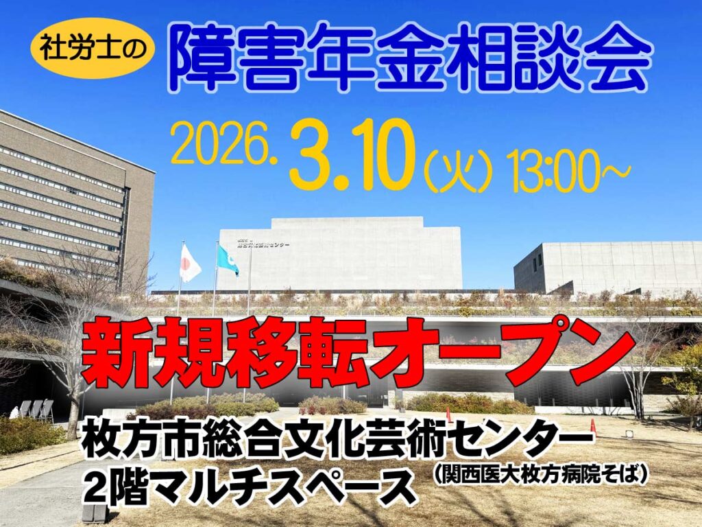枚方会場(イズミヤ枚方店)での障害年金相談は、2026年2月10日をもって終了となり、